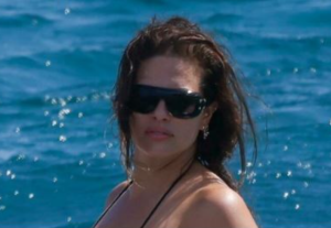 - Ešli je zablistala u odvažnoj, ali sofisticiranoj kreaciji koja je savršeno spajala senzualnost i eleganciju. Haljina od prozračnog materijala, ukrašena crnom čipkom, nježno je pratila liniju njenog tijela, ističući obline na način koji je istovremeno bio smio i profinjen. Ispod providne tkanine jasno su se nazirali crni donji veš i duboke gaćice, ali umjesto vulgarnosti, cijeli stajling odašiljao je poruku samopouzdanja i potpune kontrole nad vlastitim izgledom.