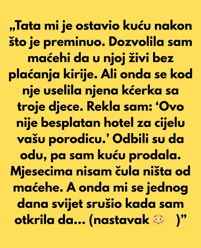 Žena je, nakon određenog vremena, shvatila da granice koje je postavila nisu bile poštovane. Kada je jasno dala do znanja da kuća nije besplatni hotel, reakcija njene maćehe bila je šokantna. Odbijajući napustiti kuću, maćeha je zapravo imala skrivenu klauzulu u testamentu koja joj je garantovala doživotni boravak. Ova informacija, koja je izašla na svjetlo dana, promijenila je sve. Zamislite samo osjećaj izdaje kada shvatite da ste bili žrtva manipulacije unutar vlastite porodice. Osjećaj nevjerice i gubitka povjerenja u voljene osobe može biti devastirajući.