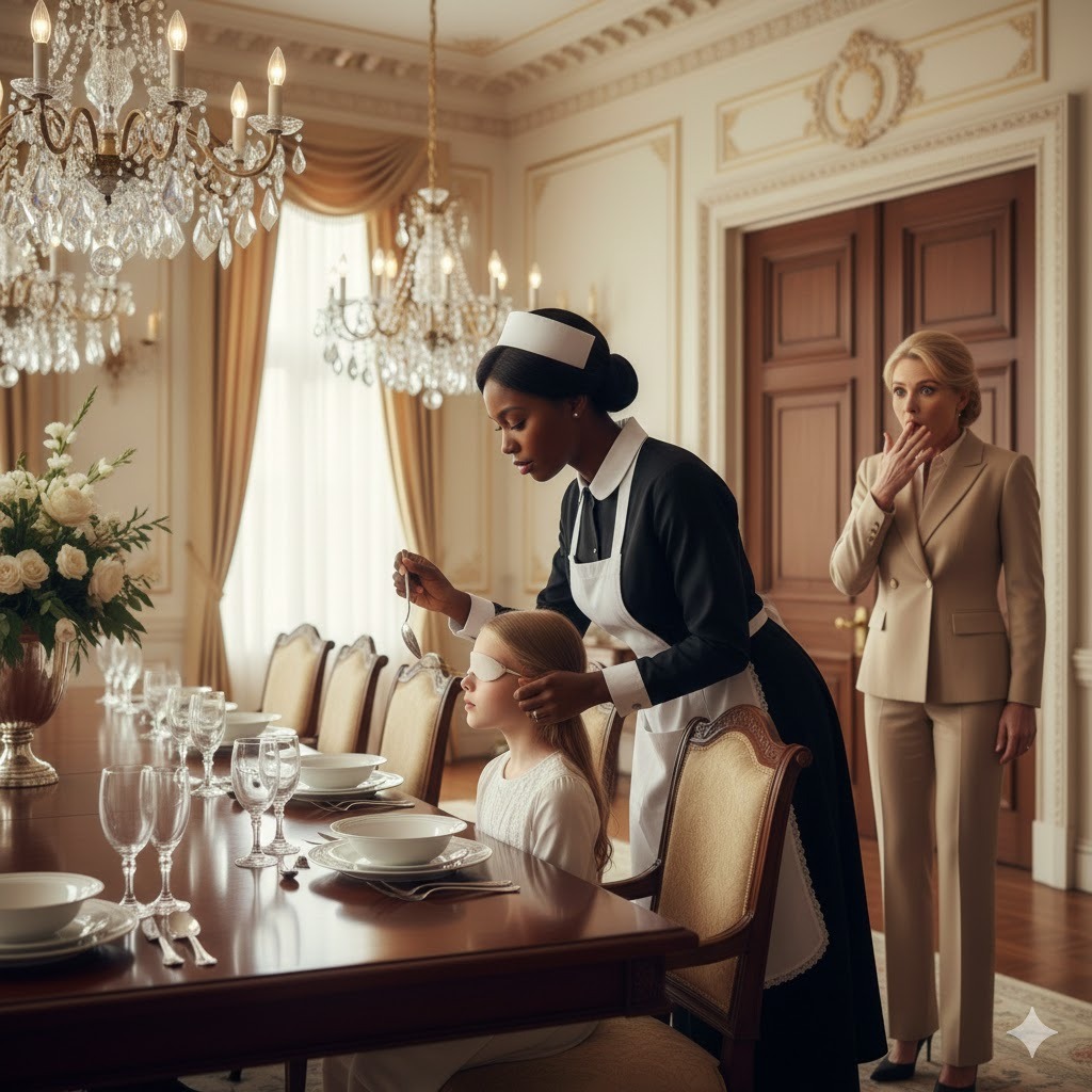 Djevojčica je doživljavala svijet kroz dodir i zvuk, a majka je pokušavala da joj omogući samostalnost, često zanemarujući prisutnost koju je toliko trebala. Tog kišnog dana, u njihovom omiljenom kafiću, situacija se činila kao običan ručak – majka je bila okupirana telefonom dok je djevojčica sjedila ispred sebe, boreći se s viljuškom, pokušavajući da uživa u obroku. U tom trenutku, majka nije bila svjesna koliko je važna pažnja i koliko njezina kćerka zapravo čezne za povezivanjem s njom. Ovdje se pojavljuje ključni trenutak; žena u radnoj uniformi, koja je radila kao konobarica, primijetila je djevojčicu kako se muči.