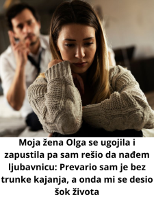 Promjene nisu došle naglo, već tiho i uporno. Olga je vremenom prestala da brine o sebi onako kako je ranije činila. Umor, posao i svakodnevne obaveze postali su izgovor za odustajanje od sitnica koje su nekada činile razliku. Teretana je ostala iza nje, šminka i uređivanje postali su rijetkost, a godine su donijele i višak kilograma. Andrej je pokušavao razgovarati, nuditi pomoć, predlagati rješenja, ali je nailazio na zid. Svaki pokušaj bliskosti završavao se riječima da je pusti na miru.