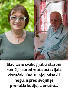 Godinama je svakog jutra ostavljala mali poklon na njegovom pragu – komadić hleba sa džemom, šoljicu toplog čaja, ponekad i tvrdo kuvano jaje. Nikada nije očekivala ništa zauzvrat, samo je želela da zna da nije sam. Nikada nije ostavljala poruke, jer nije želela da izazove nikakvu reakciju, ali to je bio način na koji je Slavica osvežavala svoj dan. Osim toga, nije ni znala da li on zna ko je ostavlja te sitne poklone.
