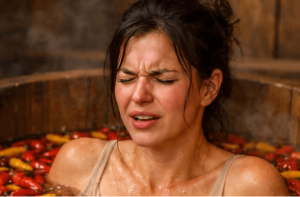 Na prvoj bračnoj noći, dok je njen muž spavao, vrata su se tiho otvorila, a žena je pozvana da pođe sa njegovom majkom. Očekivala je samo još jedan razgovor, ali scena koja ju je dočekala bila je mnogo strašnija nego što je mogla da zamisli. U velikoj kadi bila je voda crvene boje, koja je, kako se kasnije ispostavilo, bila od ljute paprike. Majka njenog muža je naredila da uđe u vodu, potpuno obučena, i da ostane tamo neko vreme. Voda joj je pekla kožu, suze su padale, ali ona nije imala snage da se pobuni. Ovaj ritual ponavljao se svake noći, dok je tokom dana njen muž bio brižan i pažljiv. No, noću je njegova porodica imala sasvim drugačija očekivanja i zahteve.